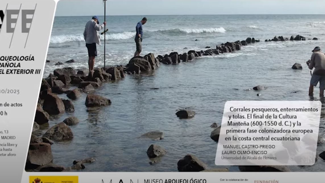 Corrales pesqueros, enterramientos y tolas. El final de la Cultura Manteña (600-1550 d. C.) Arqueología española en el exterior III Manuel Castro-Priego y Lauro Olmo-Enciso (Universidad de Alcalá de Henares) Desde el año 2018 un equipo español (Universidad de Alcalá) y ecuatoriano (INPC) está excavando un conjunto de yacimientos costeros en la costa central…